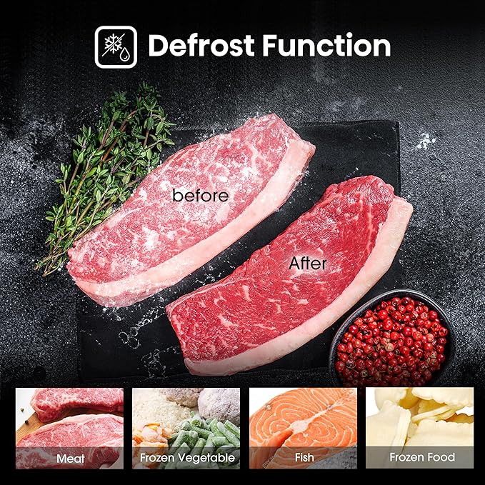 Defrost function by time or weight for flexible thawing options
